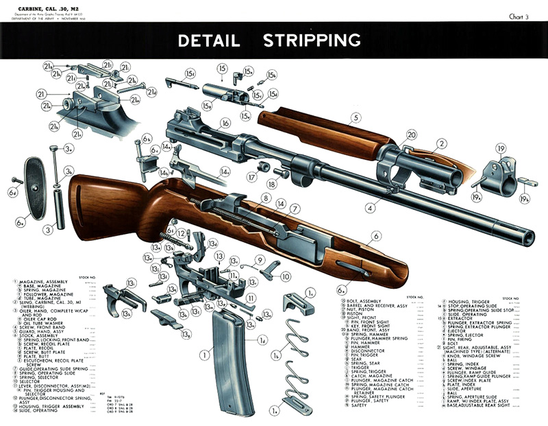 Карабин фирмы Винчестер также имеет интересную историю. Первоначально его прототип был создан несколькими инженерами фирмы в свободное от работы время как легкое охотничье оружие. При этом за основу карабина была взята схема газоотводной автоматики, разработанная конструктором Дэвидом Вильямсом, в это время… сидевшем в тюрьме за убийство. Когда фирма получила требования Армии на новый легкий карабин, на базе уже имевшейся в наличии конструкции всего за месяц с небольшим был создан вполне дееспособный прототип.