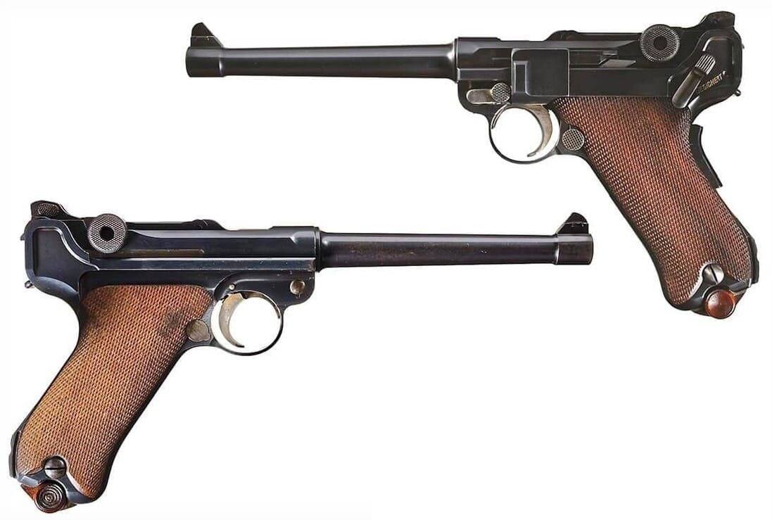 Морские «Люгеры» обр. 1906 года (вверху) и 1908 года (внизу).
