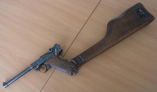 К автоматическому пистолету германского флота обр. 1904 года конструировать приставной приклад, с помощью которого пистолет обращается в карабин. Как правило, пистолет носится без приклада только на судах; при высадке же на берег рекомендуется даже офицерам не отказываться от услуг пристегивающегося к пистолету приклада.