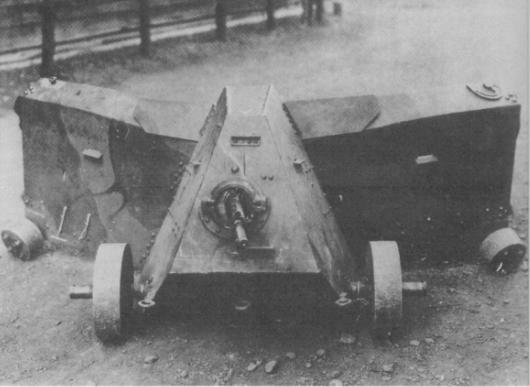 Для перемещения предполагалась что пулеметчик упираясь в землю будет перекатывать конструкцию самостоятельно (что при полном весе 155кг. более чем сомнительно).