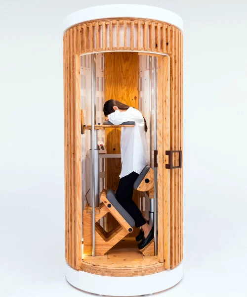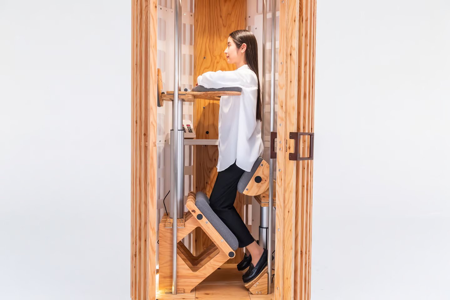 Спальные капсулы под названием «GIRAFFNAP», созданные японской компанией KOYOJU Plywood Corporation, позволяют людям вздремнуть стоя, во время обеденного перерыва.