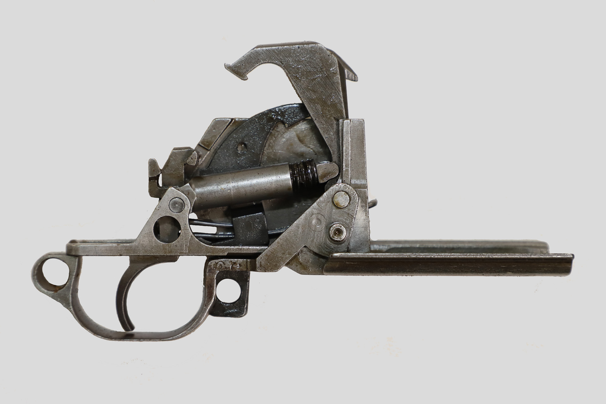 В принципе, это был практически классический по сей день вариант с постановкой спускового крючка на подпружиненное шептало при откате затвора и его перехватом на передний выступ при отпускании спускового крючка — просто и выступ и подвижный задний зацеп переместились именно на шептало, спусковой крючок был сделан отдельным узлом.