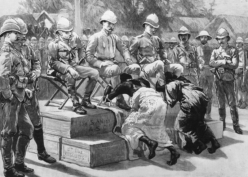 Первым делом от него потребовали еще полторы тонны золота, но король ответил, что «денег нет, но вы держитесь», точнее говоря просто «денег нет»). Англичане перевернули вверх дном весь город, но нашли лишь золотые безделушки, статуэтки, украшения и культовые предметы общим весом менее центнера. От огорчения британцы сожгли Кумаси, оставив без крова всех его жителей. Короля и его мать заставили пройти унизительную процедуру «приведения к покорности» с целованием ног британских офицеров, а потом всю королевскую семью отправили в ссылку на Сейшельские острова.