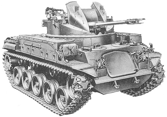Главным вооружением ЗСУ являлись две 40-мм автоматические пушки М2А1 (длина ствола — 60 калибров), установленные в люльках М4Е1 в бронированной, открытой сверху вращающейся башне. Электрогидравлический привод вращения башни обеспечивал поворот на 360° за 9 сек, а резервный ручной привод — за 10,5 сек. Угол вертикальной наводки — от −5° до +85°.
